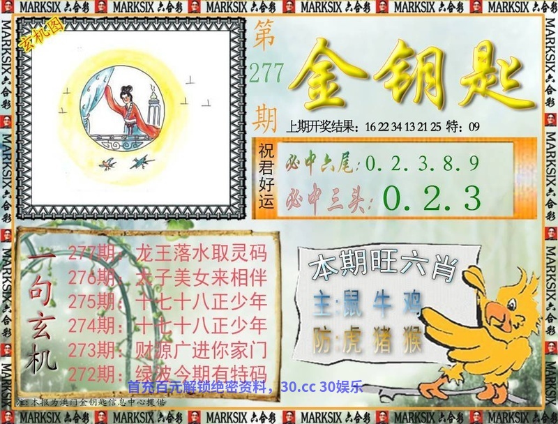 277期:绝杀三合☯02-04-10合☯开:虎16准
