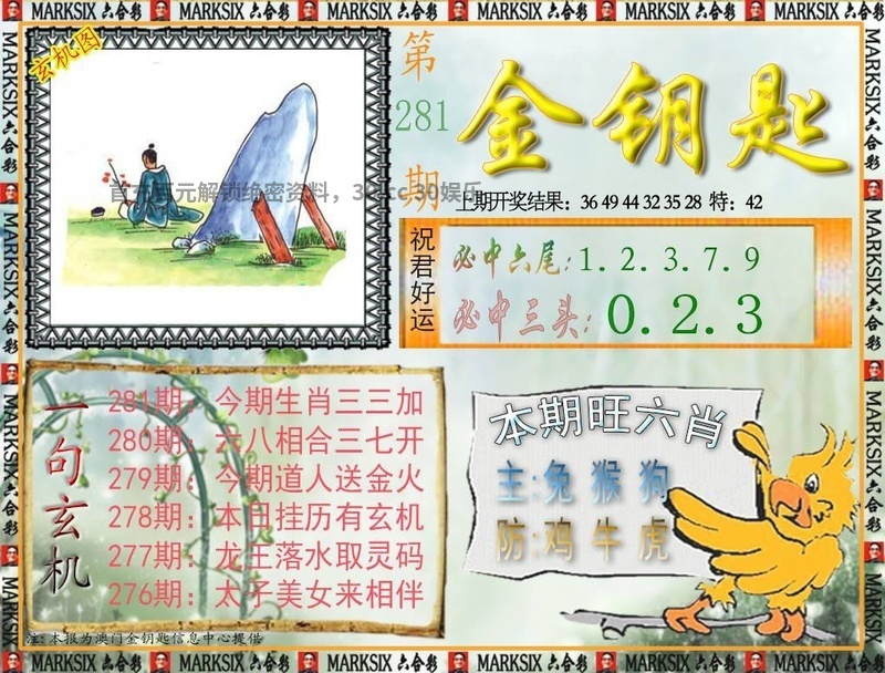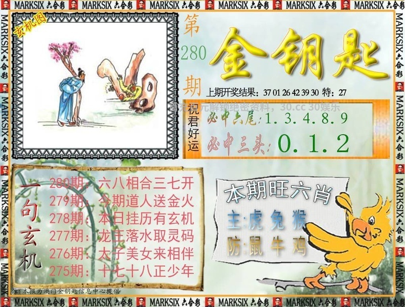 280期:绝杀三合☯01-02-07合☯开:鼠42准